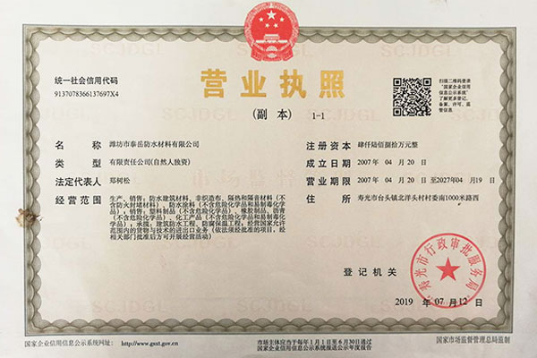 潍坊市泰岳防水材料有限公司 |